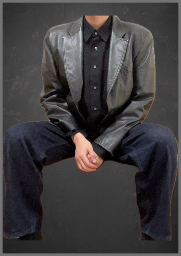 このジャケットの最大の魅力は、ラムレザーの着心地の良さだけではありません。それは、現代のファッションにはない「構築的なシルエット」にあります。